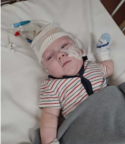 I developed sepsis, and Gabryś suffered from intestinal necrosis. At just four days old, he underwent his first surgery, during which a section of his intestine was removed. For months, he lived with a stoma as he battled to survive. But this was just the beginning of his struggles. Due to extreme prematurity and severe strokes, Gabryś developed hydrocephalus, requiring three attempts at shunt insertion. In the meantime, he endured sepsis and purulent meningitis twice. The medical staff didn’t give us much hope, but Gabryś defied all odds. He survived it all, showing a strength and will to live that no one could have imagined.